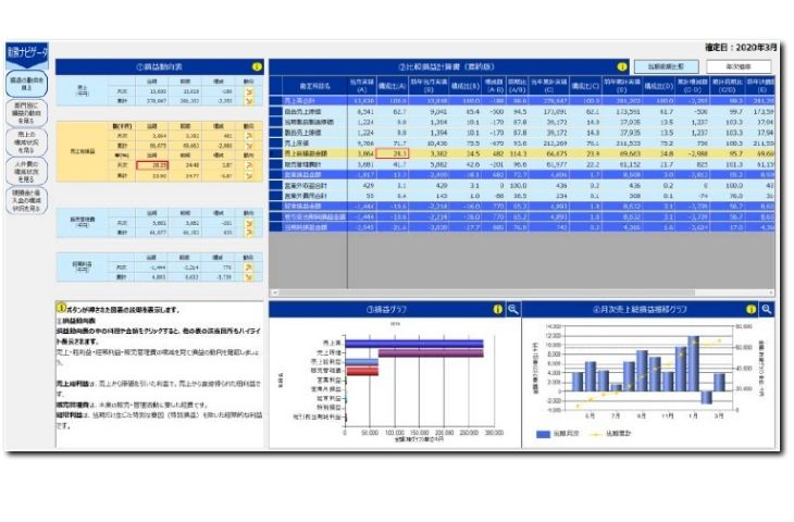 損益計算書や貸借対照表の読み解きが簡単に部⾨損益管理にも対応