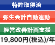 | 弥生会計連動版 | 価格 19,800円(税込)/年 ⇒ トライアル版 2ヶ月無料 |
