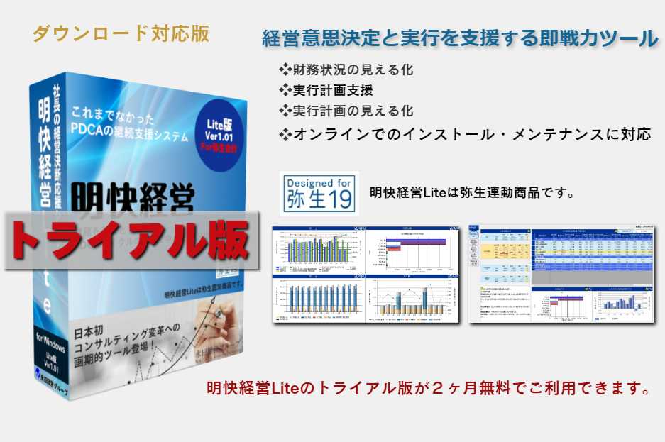 明快経営Liteのトライアル版が2ヶ月間ご利用になれます。